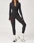 Contour Seams Workout Jumpsuit Zip Up One Piece Bodysuit