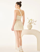 Stay sporty and stylish with the Mesh Tennis Set with Asymmetrical Strap Tank Top and Skirt. Designed for both performance and fashion, this set features a unique asymmetrical strap tank top with a stylish crisscross back for a modern athletic look. The matching skirt includes built-in shorts and pockets, offering comfort, coverage, and convenience during active movement.