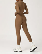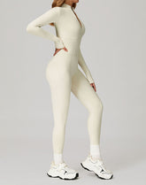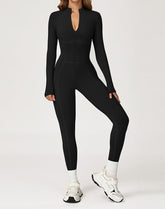 Contour Seams Workout Jumpsuit Zip Up One Piece Bodysuit