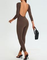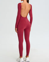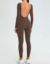 Long Sleeve Backless Workout Jumpsuit One Piece Bodysuit