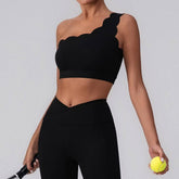 Stand out in style with the Wavy One Shoulder Sports Bra Tank Top with Removable Pads. Featuring a unique wavy edge and sleek one-shoulder design, this top adds a fashionable touch to your workout or casual look. The removable pads provide customizable support, making it both stylish and practical for everyday movement.