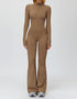 Long Sleeve Flare Workout Jumpsuit Zip Up Wide Leg Bodysuit