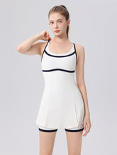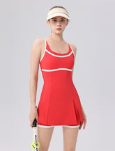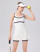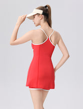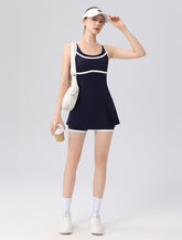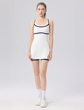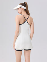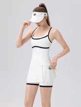Stay confident and comfortable with the Workout Tennis Golf Mini Dress with Built-in Bra and Shorts. Designed for active performance and sporty style, this mini dress features built-in bra pads for light support and built-in shorts with pockets for added coverage and convenience. The contrast color design adds a modern and dynamic touch, making it perfect for both sports and casual wear.
