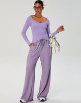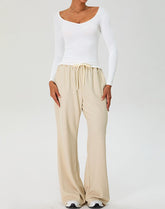 Enhance your sporty style with this Activewear Set featuring a curved neckline top paired with soft drawstring sweatpants. Designed for comfort and mobility, this outfit transitions seamlessly from workouts to everyday wear.