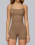 This set includes a crisscross-back tank top and high-waisted shorts, designed to keep you cool and supported during any workout.