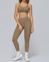 This athletic set combines a supportive cross-back sports bra with high-waisted legging. Designed for flexibility and comfort, it delivers both performance and modern style.
