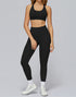 This athletic set combines a supportive cross-back sports bra with high-waisted legging. Designed for flexibility and comfort, it delivers both performance and modern style.