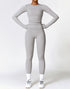 This activewear set combines a slim-fit long sleeve top with high-waisted leggings. The design offers full coverage while ensuring breathability and style.