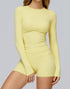 This two-piece set features a long-sleeve slim-fit T-shirt and high-waisted shorts. Combining coverage and flexibility, it’s perfect for transitional seasons.