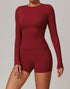 This two-piece set features a long-sleeve slim-fit T-shirt and high-waisted shorts. Combining coverage and flexibility, it’s perfect for transitional seasons.