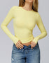 Crewneck Long Sleeve Shirt Basic Tees Slim Fit Crop Tops