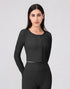 Long Sleeve Button Up Cropped Cardigan Crew Neck Tops