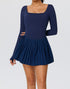 This long sleeve pleated tennis dress combines sporty elegance with functionality. Designed with a square neckline, built-in shorts with pockets, and thumb holes, it ensures both performance and style on the court.