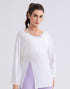 This yoga shirt offers a simple yet functional design, crafted with long sleeves, a round neckline, and a slit hem for added comfort and style. Ideal for both practice and everyday wear.
