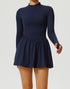 Long Sleeve Zipper Tennis Dress with Built-in Short