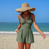 Enjoy comfort, confidence, and effortless style with this versatile one-piece swimsuit romper designed for both water and land.