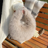 Stay cozy and fashionable with this fluffy tote bag that blends practicality with winter charm.