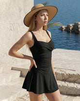 Feel confident and elegant with this one-piece swim dress, designed to flatter your curves and provide stylish coverage with built-in tummy control.