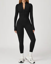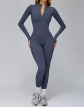 Long Sleeve Yoga Jumpsuit Zip Up Bodysuit with Chest Pads