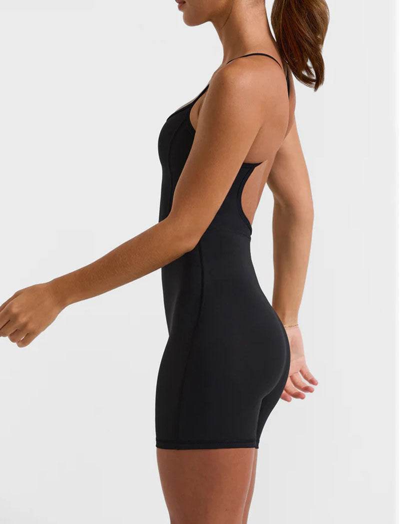 The hollow back butt lift yoga jumpsuit features a sleek U-neck design and an I-line cut for a streamlined silhouette. The hollow back design adds a stylish touch while enhancing your natural curves for a flattering fit during any workout.