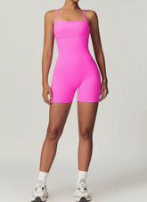The V back workout bodysuit combines style and performance with its adjustable shoulder straps, flattering cutout back design, and gathered detail at the hips. Perfect for any active pursuit, this bodysuit provides comfort and a chic silhouette.
